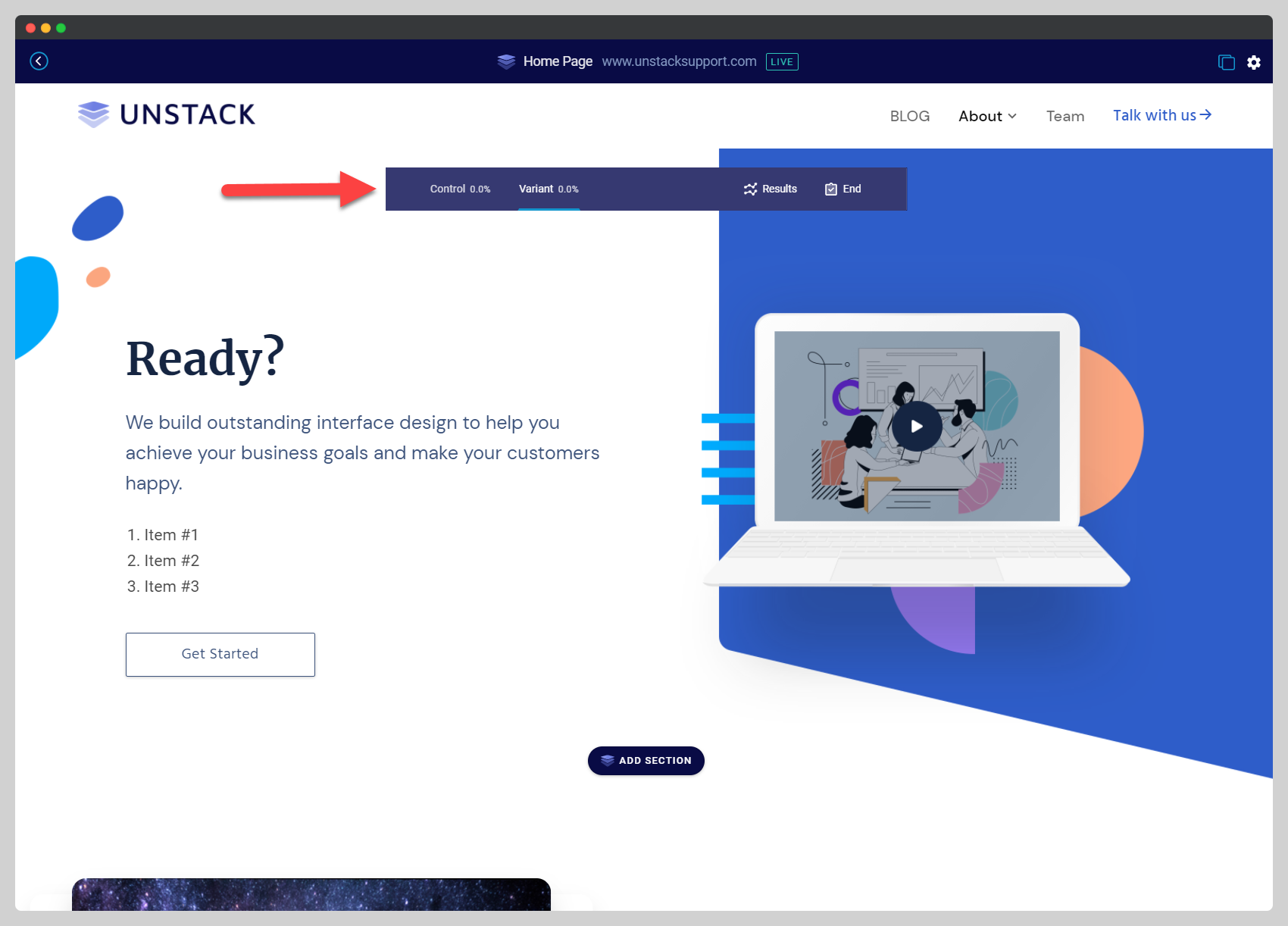 Through Studio, you're able to run full A/B tests for the components that make up your webpages; in fact the process is very simple.